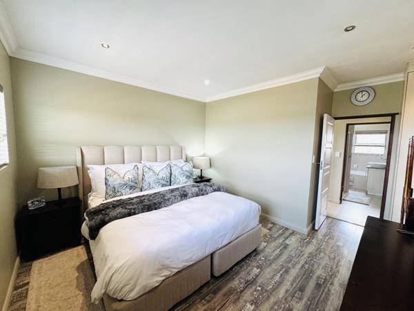 Upstairs, three inviting bedrooms provide tranquil retreats for the whole family. The main bedroom offers a serene escape with ample cupboard space and an elegant en suite bathroom.