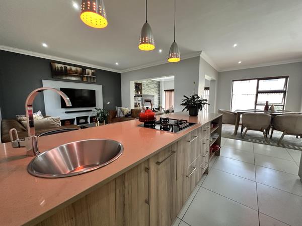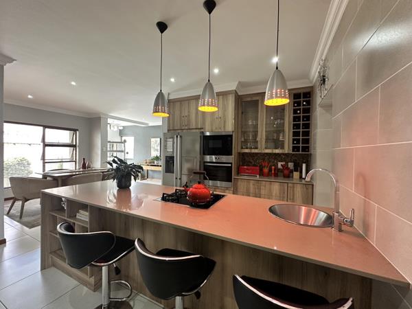 Welcome to this stunning, stylishly renovated home perfect for modern family living. The heart of the home features a beautiful open-plan kitchen with an island centrepiece and gas stove, designed for both functionality and flair. Natural light floods the spacious living and dining areas, seamlessly connecting to the newly renovated braai area complete with built-in wine storage ideal for entertaining.