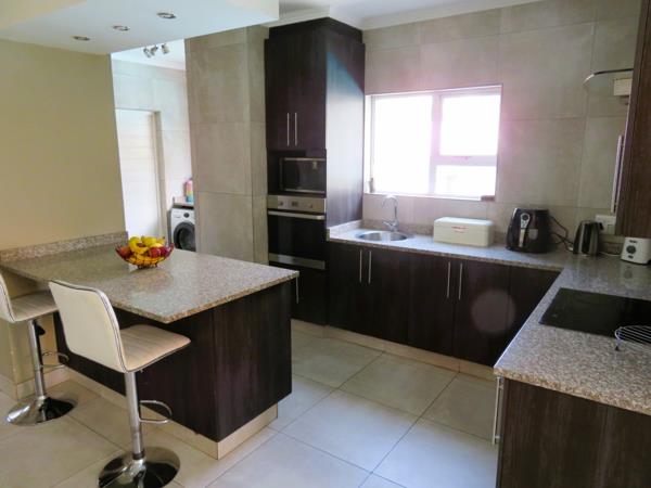 As you enter this beautiful home, you are welcomed by an inviting open-plan living area. The open-plan living area consist of 2 lounges and a dining room. The kitchen comes with ample cupboard space, a breakfast nook and a separate scullerylaundry area with pantry. The one living area leads to a beautiful deck and a sparkling pool with built-in braai. The garden also offers enough space for children to play.