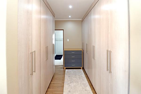 The heart of the home is a contemporary kitchen fitted with quality finishes and a separate scullerypantry that accommodates up to three appliances and provides more storage space. The kitchen flows effortlessly into the bright open-plan lounge and dining area, creating a warm and inviting family space. From here, step into the fully enclosed patio featuring a built-in braai and stackable glass doors, perfect for entertaining all year round.