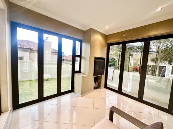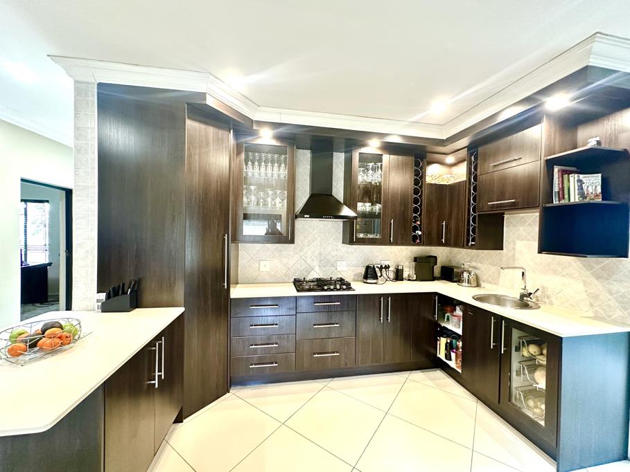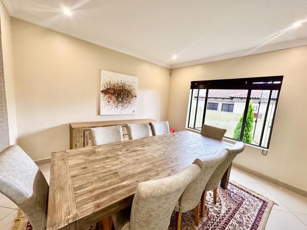 This well-maintained double-storey home welcomes you with a neat plastered exterior and stylish mirror garage doors. The entrance hall leads to a private study and guest loo, flowing into an open-plan lounge, dining area, and modern kitchen with granite tops and a gas stove.