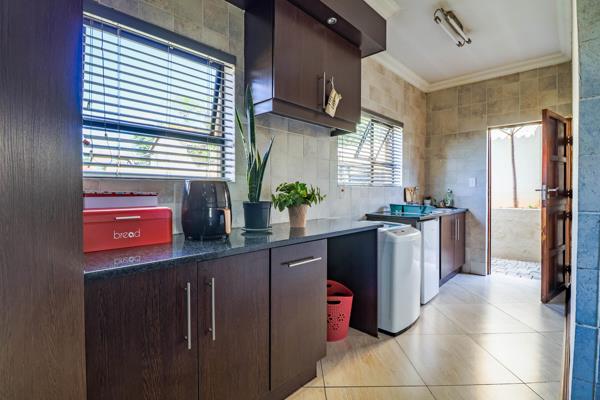3 Bedrooms, SQ or 4th roomstudy with en-suite bathroom with shower only, 2 Full Bathrooms, Guest WC, Lounge, Dining, Open plan kitchen with separate scullery, Outside Patio with build in braai, Manicured Garden, Double Automated Garage with a tandem to the garden