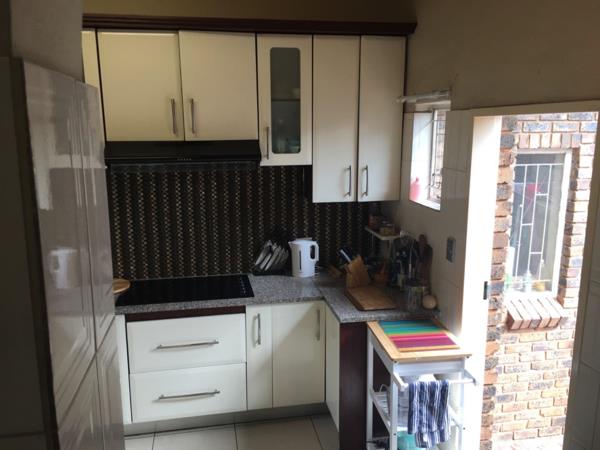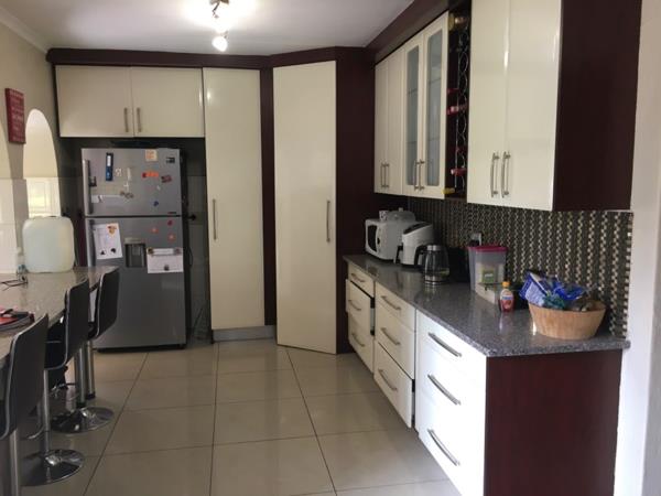 A modern white kitchen to die for! Ample kitchen cupboards, glass top stove, walk in pantry cupboard, scullery for all your appliances. Lovely open plan dining room lounge leading out with a sliding door to a covered patio with Louvre deck.