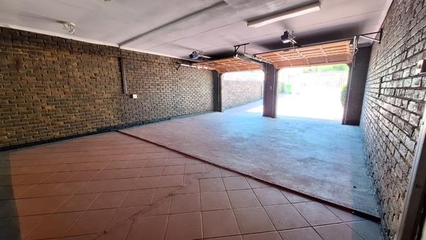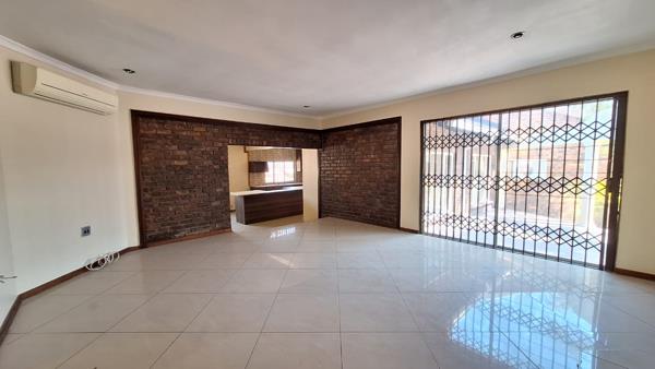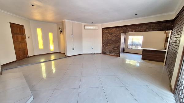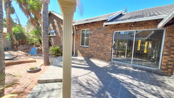 As you step inside, a welcoming **foyer** leads into a fully tiled **modern living area**, complete with **air conditioning** and large sliding doors that open to an **inviting entertainment space** with poolside views. To the left, a **neatly tiled dining area/lounge** provides seamless access to the **double extra-length garages**, while to the right, a **newly renovated kitchen** offers ample cupboard space, an additional **scullery**, and room for all essential appliances.