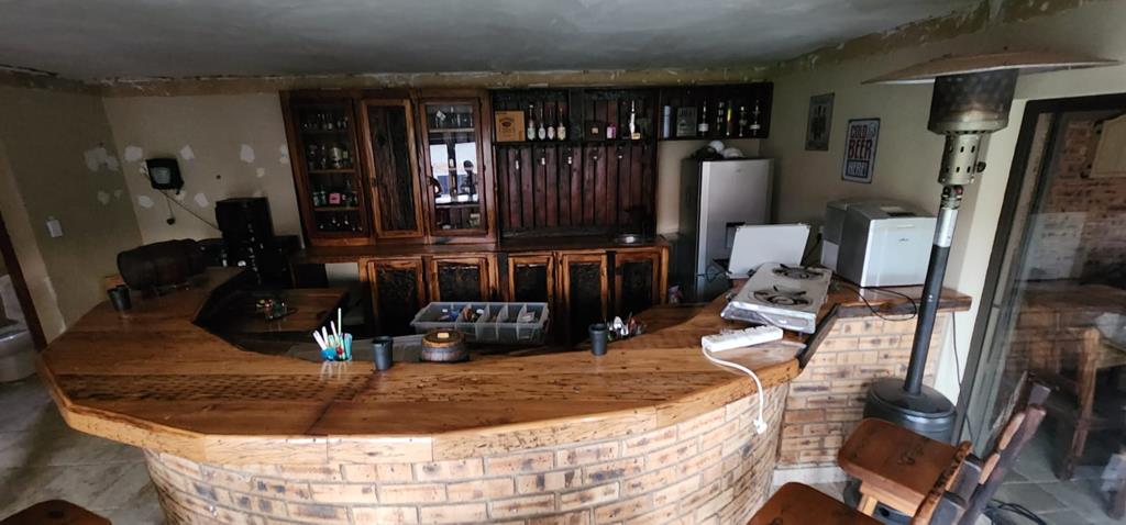 Uncompleted project with plans that can accommodate a second storey, 3 bedroom 2 bathroom house with a lounge , tv room , dining room , kitchen , laundry , scullery , dubble garage , storage , unfinished swimming pool and jacuzzi , under cover build in braai area with a bar and cupboard build out of sleeper wood and a newly renovated one bedroom flat .