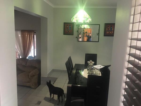 Lounge, dining room area leading out to a patio with braai area and private garden.