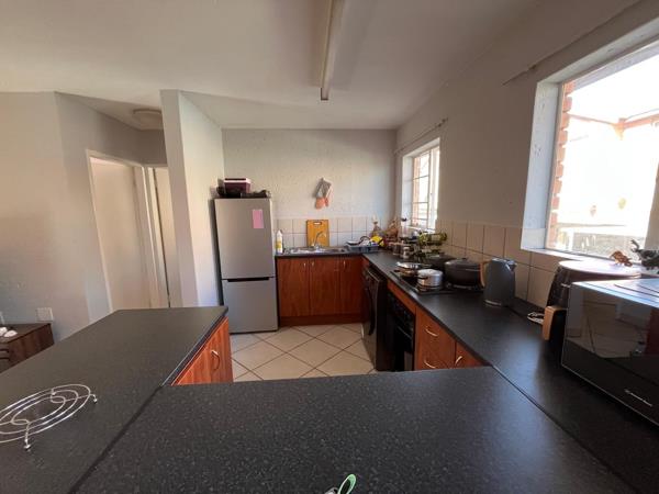 There is a spacious kitchen with a big lounge.