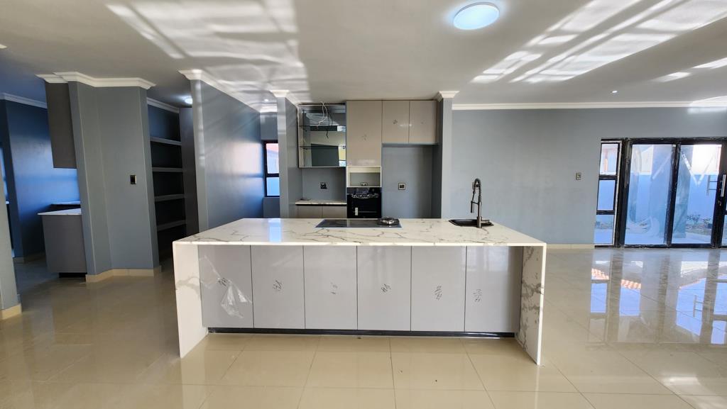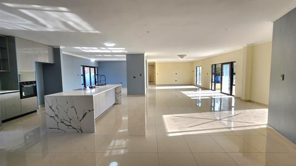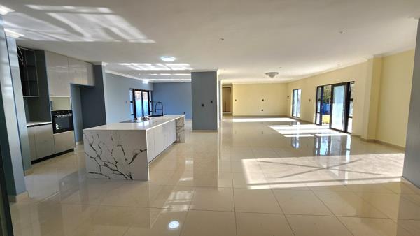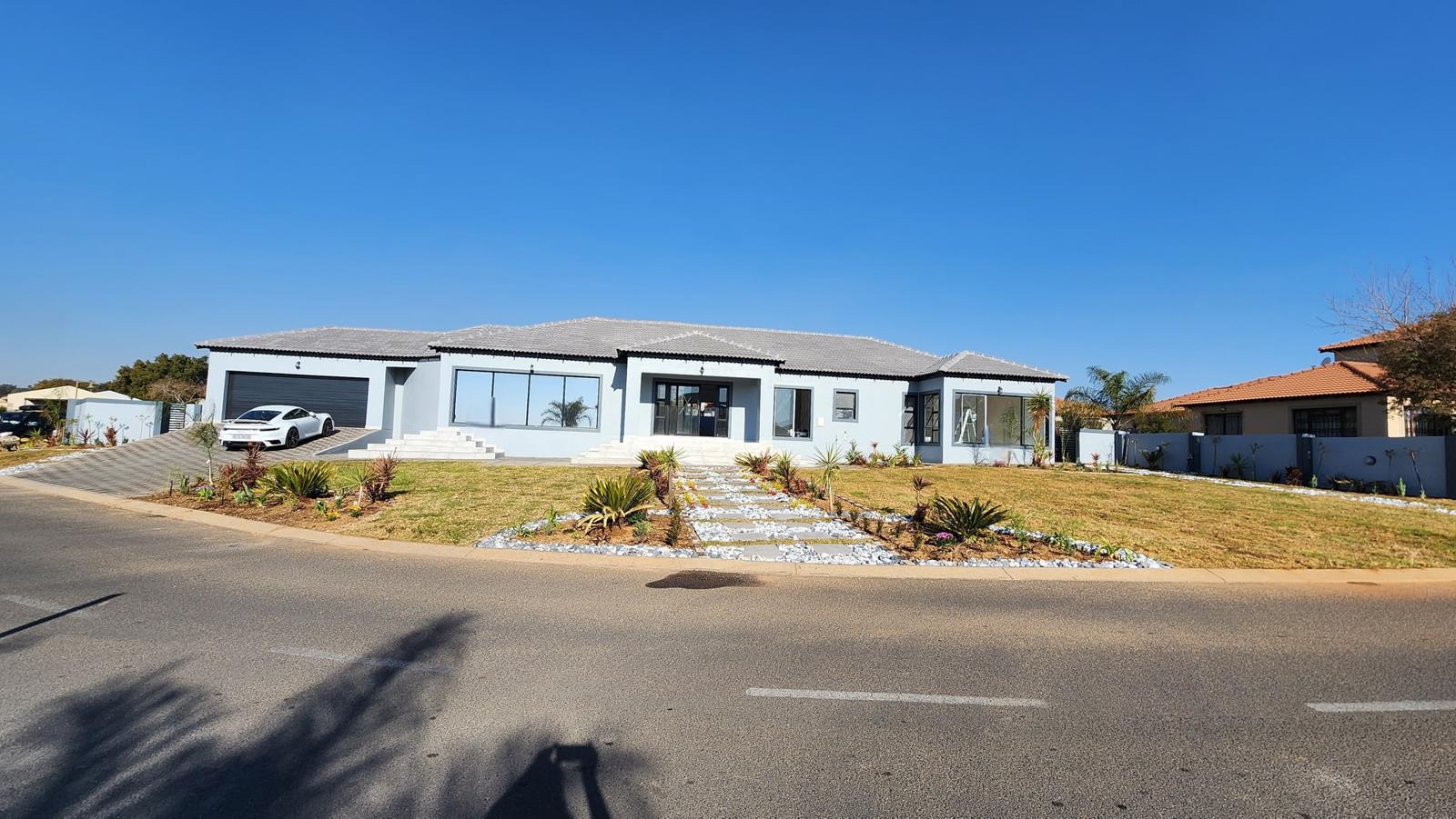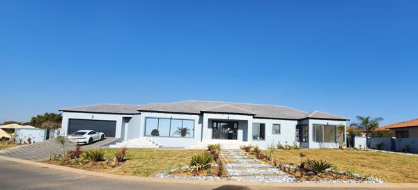 This newly built and beautiful single-story home is situated in the sought-after Estate, offering comfort, functionality, and stylish finishes throughout. Step into a welcoming reception area that flows into a spacious open-plan layout, featuring five versatile living areas and a dedicated dining room &mdash ideal for both family living and entertaining. The modern kitchen is a true centerpiece, fitted with both gas and electric stoves, a central island with a mini sink, sleek finishes, a walk-in pantry, and a scullery with space for three appliances. A built-in wine shelf adds a sophisticated touch. This home offers three generously sized bedrooms with contemporary built-in cupboards. The main bedroom includes a walk-in closet and a full en-suite bathroom. Both bathrooms feature modern finishes and fittings. A guest toilet adds convenience for visitors. Additional features include: Downlights throughout the home Staff quarters A covered patio for outdoor relaxation Landscaped front and back gardens with an irrigation system Daylight-sensitive exterior lighting that switches on automatically after sunset The property is ideally located just 500m&ndash1km from Blue Valley Mall, offering easy access to shopping and other amenities. Enjoy secure estate living with a stylish edge &mdash perfect for families or those looking for comfort and convenience
