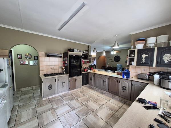 Beautiful kitchen. Built-in cupboards. Cooking requirements are take care of by the double eyelevel oven, gas hob and extractor fan. The kitchen is very spacious with space for all major appliances.