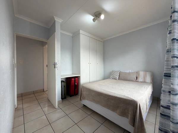 The bedroom is generously sized, fully tiled, and offers a calm, comfortable retreat. The bathroom is neat and functional, completing the unit.