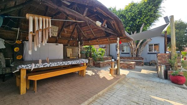 Outdoor features enhance the lifestyle appeal, including a sparkling swimming pool, lapa and a charming boma braai area, perfect for entertaining guests or enjoying relaxed evenings outdoors. The large garden provides plenty of space and privacy.