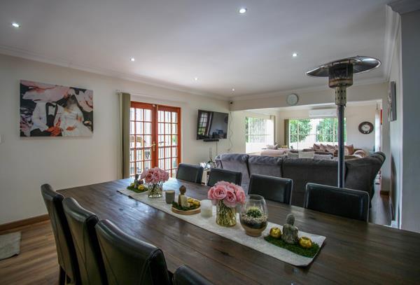 The outside space is neat and perfect for the avid entertainer. A frech door from the dining room opens onto a large patio with a louvre deck, or move to the beautiful lapa space with a built-in-braai and water connection.