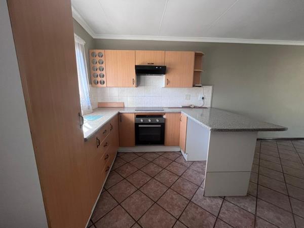 The heart of the home is the open-plan living area and kitchen, perfect for everyday living and entertaining. The kitchen is practical and well laid out, featuring built-in cupboards, a stove, under-counter oven, and a mini scullery that keeps things neat and out of sight.