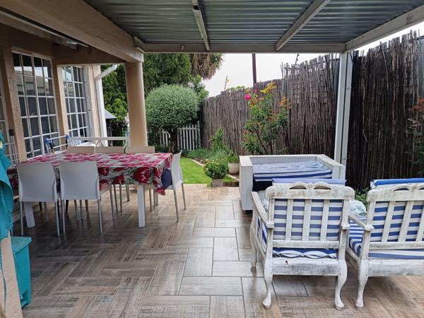 Beautiful patio overlooking a neat, well-kept private garden
