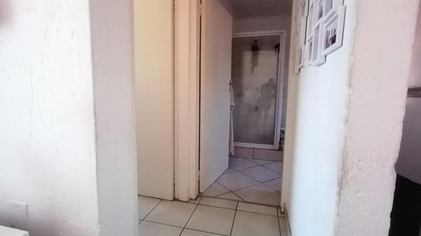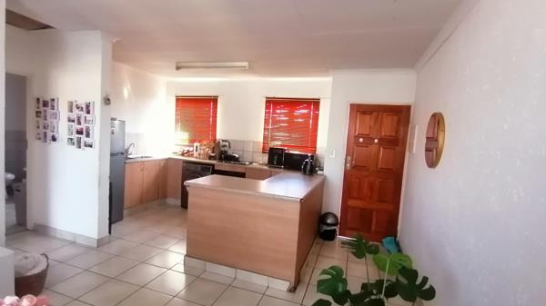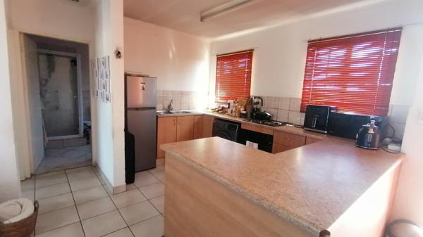 The apartment features a spacious bedroom with built-in cupboards, a well-sized bathroom, and an open-plan living area that creates a welcoming atmosphere. The kitchen is functional and neatly designed, providing ample cupboard space for everyday convenience.