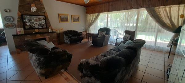 The with a well-sized dining area are ideal for family living. A versatile stoep, currently used as an office, adds extra functionality.