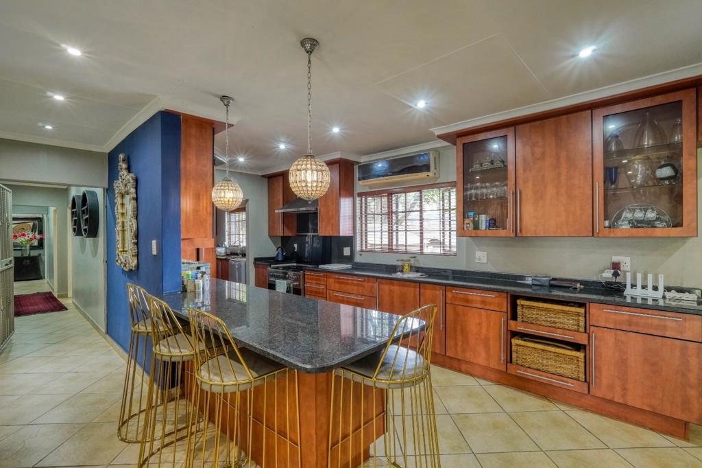 The kitchen is well equipped with a breakfast nook, stove and oven with an extractor fan, and a separate scullery that keeps the main kitchen area neat and functional. Just beside the kitchen, a hallway leads toward the private bedroom wing of the home.