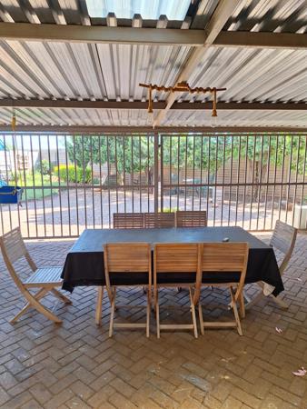 Outside is an entertainers dream . Huge garden with a pool area and a spacious braai area that leads into the house.