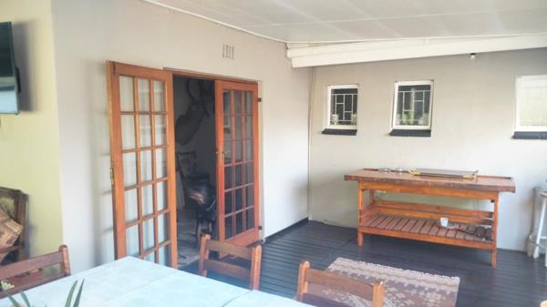 Step outside to a covered entertainment deck with a built-in braai and bar
