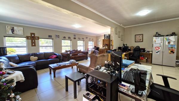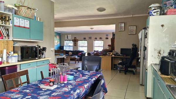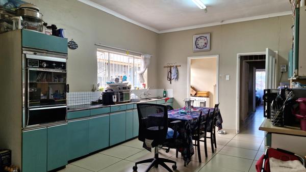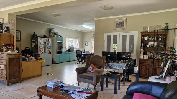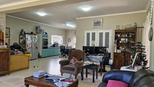 This house offers incredible potential with a bit of tender loving care. It features a spacious open-plan living area that accommodates a lounge, dining space, and study nook. Additionally, theres a separate living room complete with a fireplace, perfect for cozy winter evenings. The kitchen seamlessly connects to the living area and includes a separate laundry room. There are three generously sized tiled bedrooms, all with built-in cupboards, while the main bedroom boasts a full en-suite bathroom. The property also includes substantial outbuildings that could be transformed into a flat, along with domestic quarters and a double garage. Enjoy the expansive garden space, ideal for outdoor activities and landscaping opportunities.