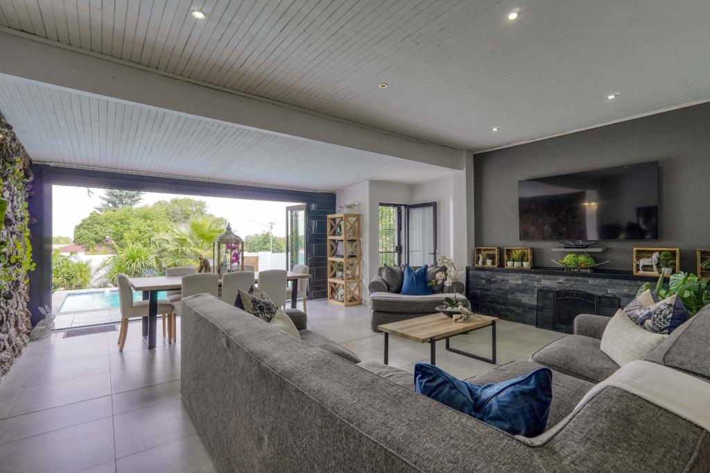 Between the main house and the separate flatlet lies a covered braai area with a built-in braai, a natural entertainment hub. The flatlet includes its own kitchen, bathroom, and private bedroom, ideal for guests or extended family.