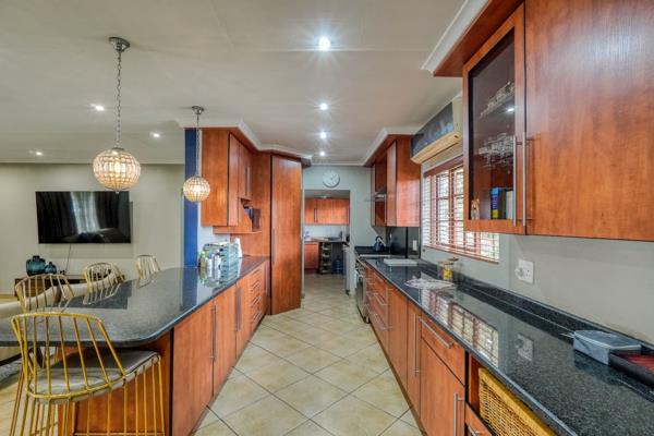 The kitchen is well equipped with a breakfast nook, stove and oven with an extractor fan, and a separate scullery that keeps the main kitchen area neat and functional. Just beside the kitchen, a hallway leads toward the private bedroom wing of the home.