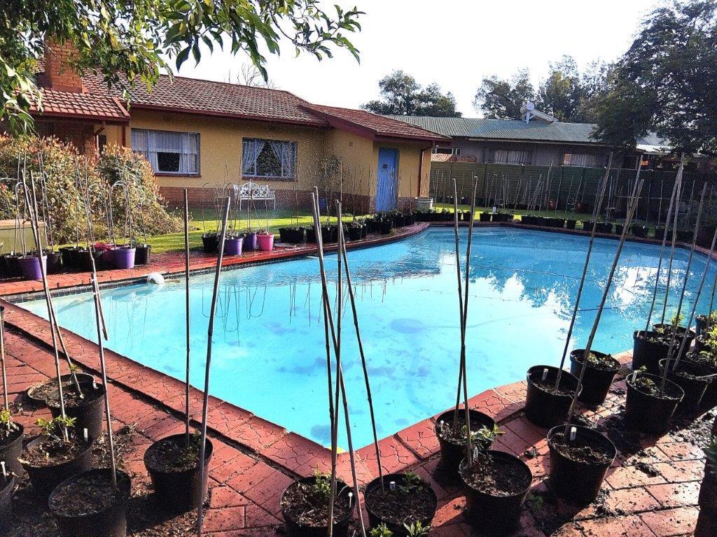 The outdoorgarden areas showcase a sparkling blue pool nestling in a beautifully, lush and manicured garden with big trees