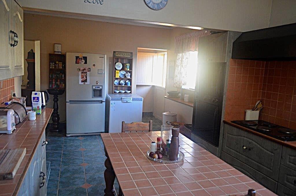 Large farm-style kitchen with tiled counters, double eye-level ovens, hob and extractor fan, lots of cupboard space plus space for that farm-style kitchen table !