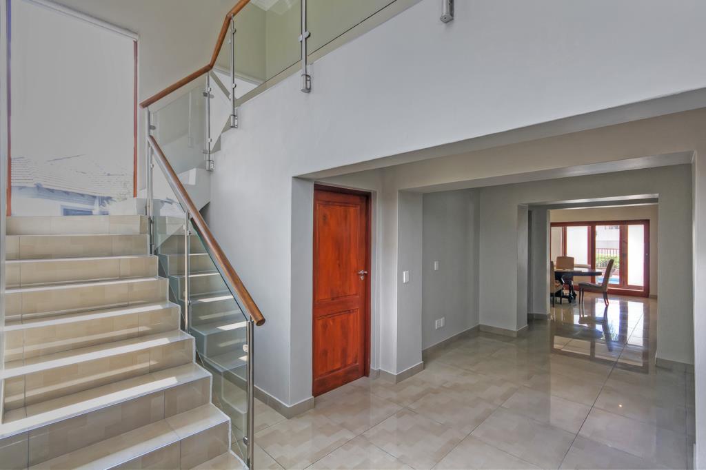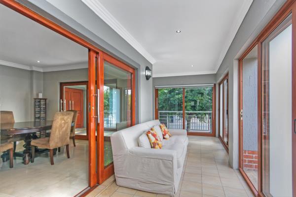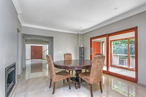 The outdoor living experience is where the home truly comes into its own. An enclosed braai room extends toward a sparkling pool, a beautifully maintained garden, and a separate pool house that doubles as an entertainment pavilion. This layered outdoor environment invites both lively hosting and quiet retreat, seamlessly blending indoor comfort with open-air living.