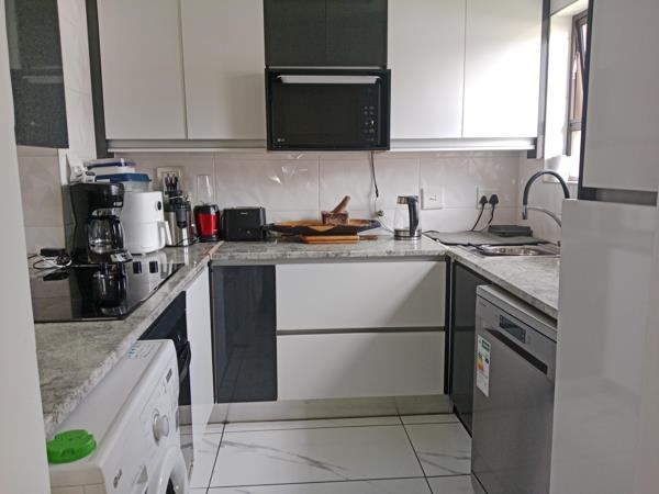 Very neat unit comprising of 2 bedrooms, 2 bathrooms, Main bed ensuite, open plan lounge and dining rooms leading onto the newly redone kitchen with modernized finishes and connections for washing machine and dishwasher.
