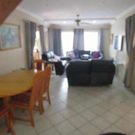 THE TWO BEDROOMS WITH LAMINATED FLOORING IS DOWNSTAIRS AND BIG ENOUGH FOR KING AND QUEEN BEDS. THE THIRD BEDROOM IS UPSTAIRS WITH A LOVELY STOEP AREA OPEN TO THE OUTSIDE WITH SLIDING DOORS.