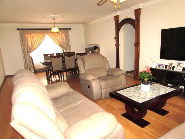 The spacious lounge/dining room has a door leading to a double automated garage. Parking is not a problem with a double and single carport.