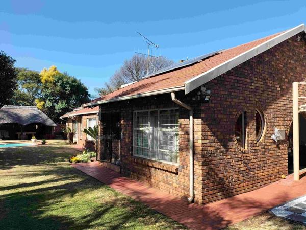 Outdoors, entertain under the thatch-roof lapa with built-in braai beside a sparkling swimming pool set against lush lawns.