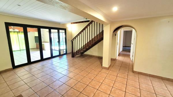 The expansive property boasts a large garden, perfect for outdoor activities. A double automated garage and a triple carport offer ample parking, while a Wendy house provides additional storage. The property is secured with a CCTV system, electric fencing, and an alarm system. Its prime location in Wierdapark, within walking distance of Bakenkop Laerskool and close to major amenities, makes it an ideal family home.