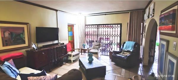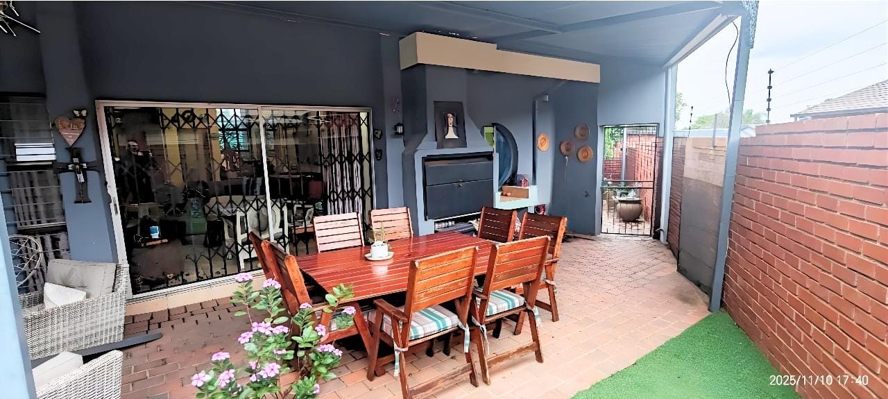 This warm and spacious family home consists of three bedrooms, two bathrooms (main bedroom en-suite with shower) guest toilet downstairs, large living area, separate dining area, as well as an entertainment area outside with a braai.