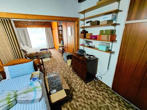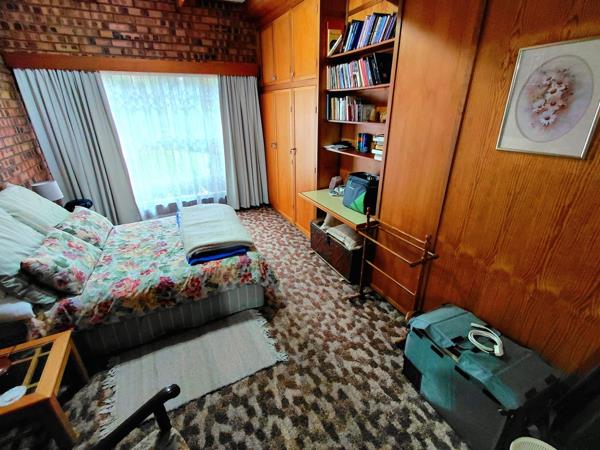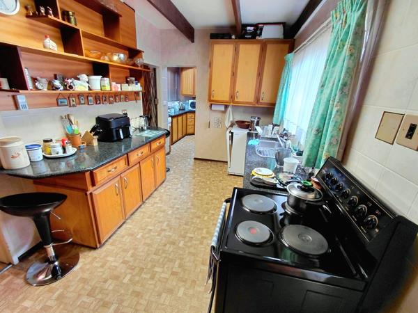 The kitchen has wooden cupboards and Novilon flooring, with a separate laundry area. The bathrooms are also finished with Novilon floors, while the rest of the home has a classic, older charm with fitted cupboards and carpeted floors.