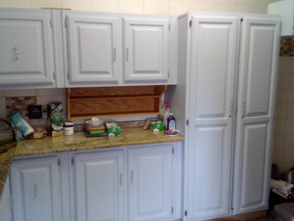 Ample kitchen cupboards, granite tops, space for double door fridgefreezer, dishwasher and washing machine.