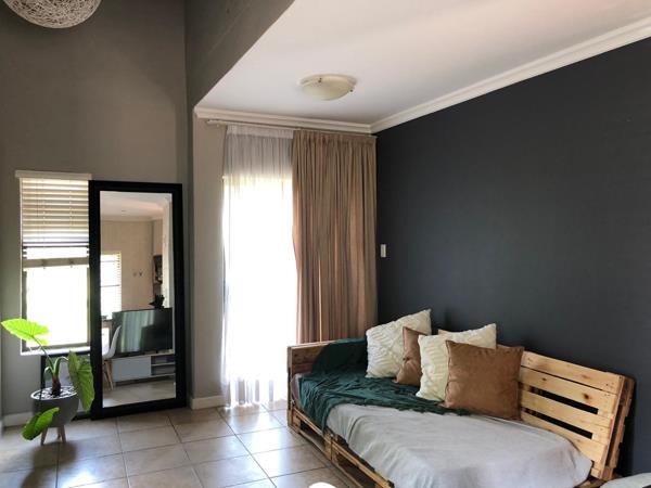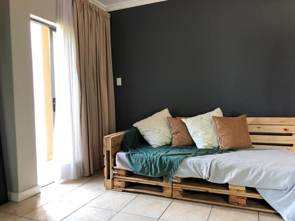 This lovely corner unit is fully equipped with blinds fitted, extra cupboards fitted in the kitchen and in bathroom ...has a North facing window in the kitchen and east facing window that brings beautiful light and sunshine into this unit. Living area and bathroom is fully tiled and bedroom has a laminated wooden floor coverage.