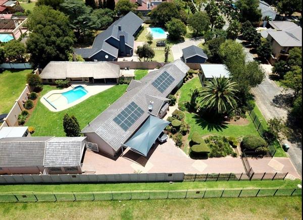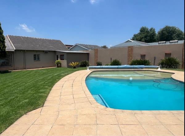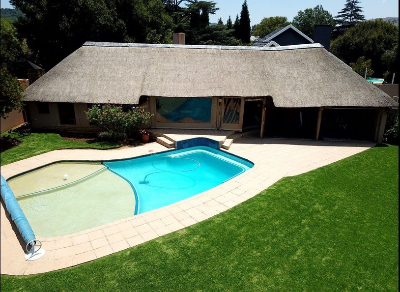 a highlight of the property is the separate thatched entertainment area next to sparkling pool jacuzzi built in braai space the size of a dance floor perfect for all gatherings.This area includes own bathroom.