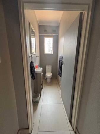 All three bedrooms are well-sized and tiled, with built-in cupboards. The main bedroom includes space for a walk-in closet and room for additional built-in cupboards.