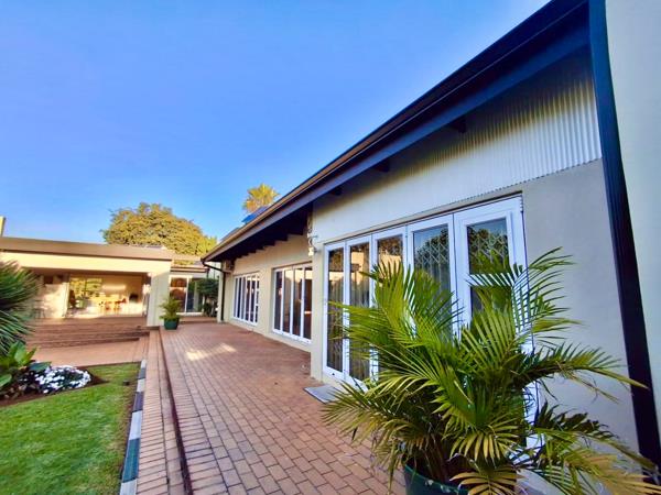 The property is secured with high brick walls, electric fencing and a large automated front gate. Fully landscaped outside pavement with garden. Ample secure parking includes a four-car garage, a tandem carport at the entrance with a wooden automated door fully enclosed with one side being the house wall. This property is designed for ultimate comfort and versatility.