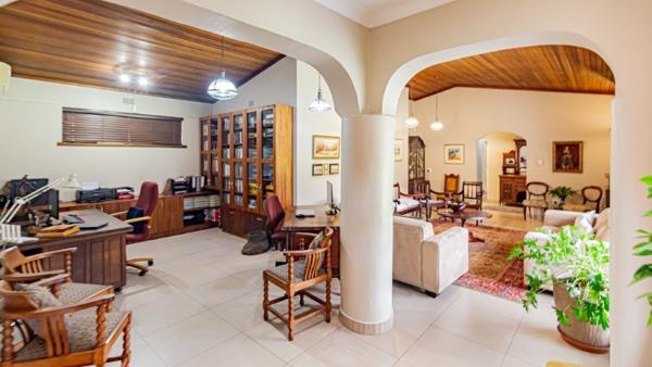 From the living areas to the covered patio, lush garden, and sparkling swimming pool