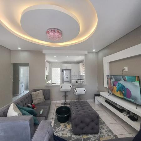 Outside consists of an open plan flatlet with lounge and kitchenette. It has its own bathroom.
