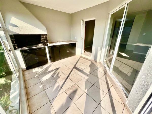 Enclosed Patio with build in braai opening with sliding doors onto pet friendly private Garden.