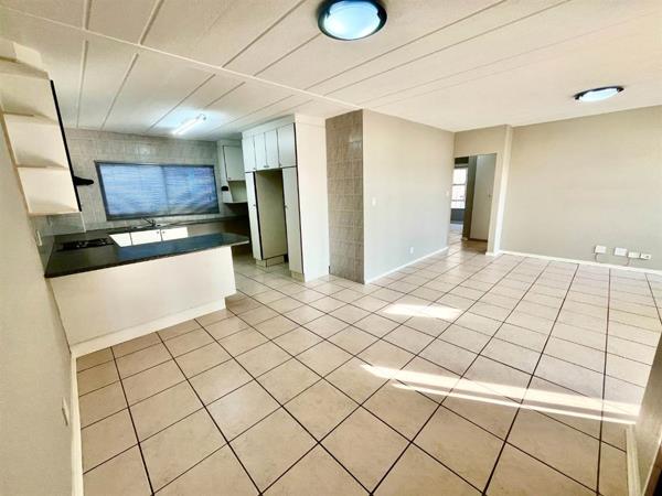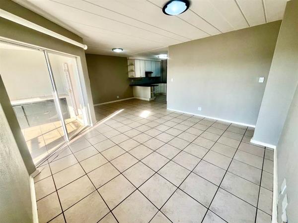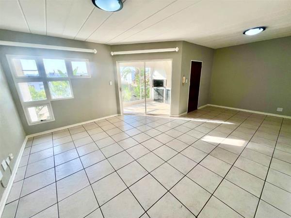 Large open plan tiled Lounge and Dining Room opening onto enclosed patio with build in braai and sliding doors opening onto pet friendly garden.