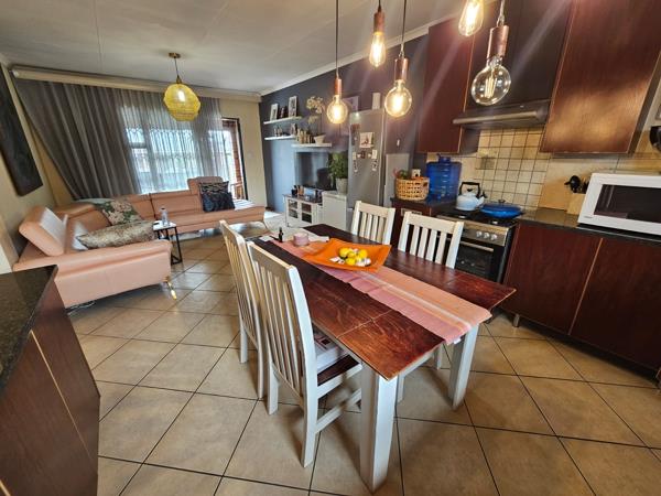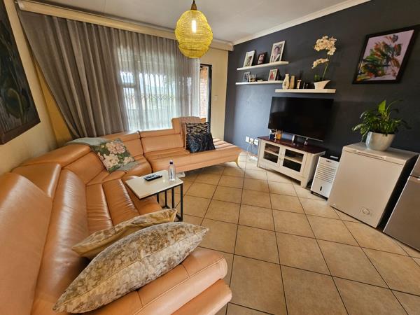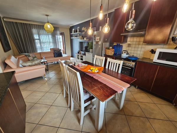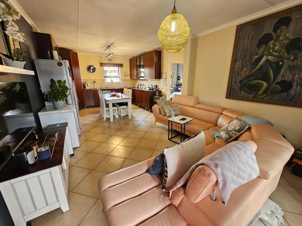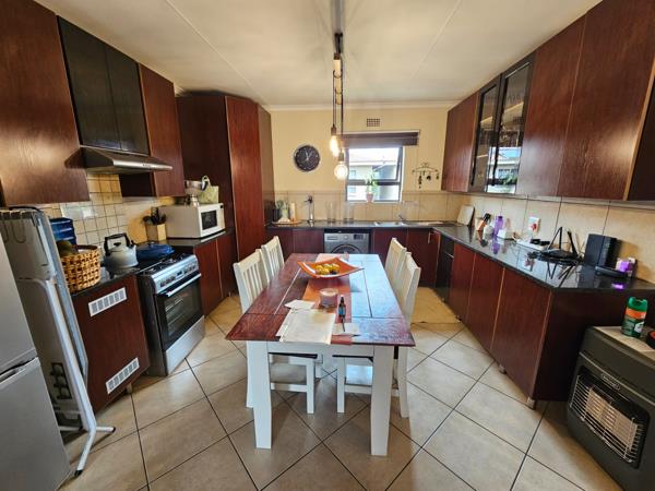Large open plan tiled Lounge, Dining room and Kitchen. Lounge opening onto patio/balcony with build in braai. Modern kitchen with gas top and electric oven, granite tops and ample space for all your electrical appliances.
