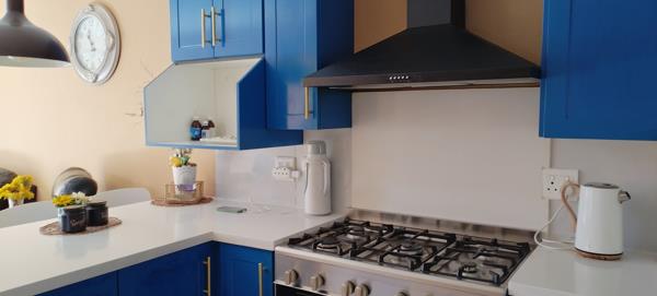 * An open-plan modern kitchen providing ample cupboard space, gas stove will be replaced