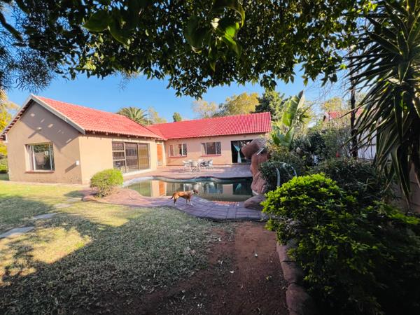 The three well-proportioned bedrooms provide comfortable private retreats, with one offering the convenience of an en-suite bathroom. Step outside to a private oasis featuring a sparkling swimming pool, perfect for cooling off during warm South African days. The expansive, lush garden, adorned with mature trees, creates a serene backdrop for the paved outdoor entertainment area, complete with a built-in braai, ideal for hosting gatherings. Pets are permitted, making this a true family haven.