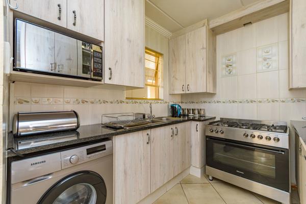 Lovely ground floor 2 bedroom 2 bathroom garden apartment. Lovely ground floor private garden apartment. Beautiful kitchen tiled to the ceiling, granite counter top with a five plate gas stove top, breakfast nook from living area, space for a double fridge. The living area leads to a enclosed patio with mirror glazed folding stacking doors. If you love gardening or a bit of sunshine there is a lovely sized private garden. There is gate which leads to the common play area. Idea for a singlecouple, eco family or retired pensioners. Security is top notch , fitted DSTV dish, My Voltage electricity system, close to Psalm Ridge Primary school.