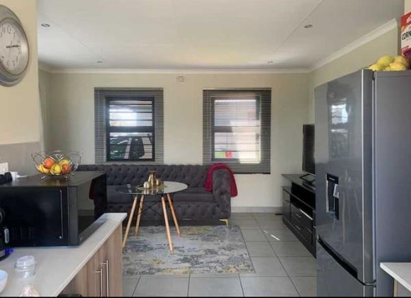 The open-plan lounge and fully fitted kitchen provide a practical, family-friendly layout, with sliding doors leading to a private, pet-friendly garden. The home also includes a solar geyser, prepaid electricity, and a carport that fits two vehicles.